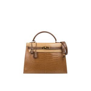 KY 32 Tri-Color Poussière Poudre Ficelle Porosus Crocodile Sellier Gold