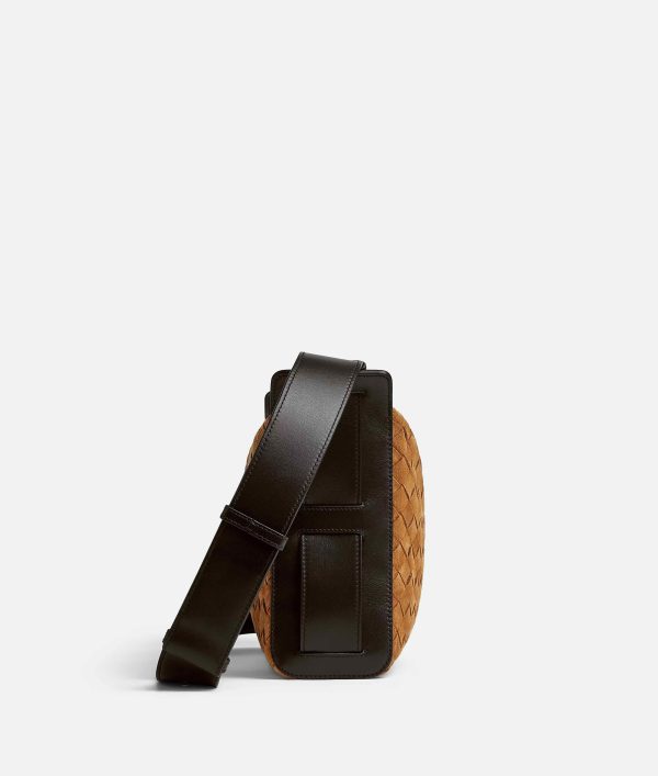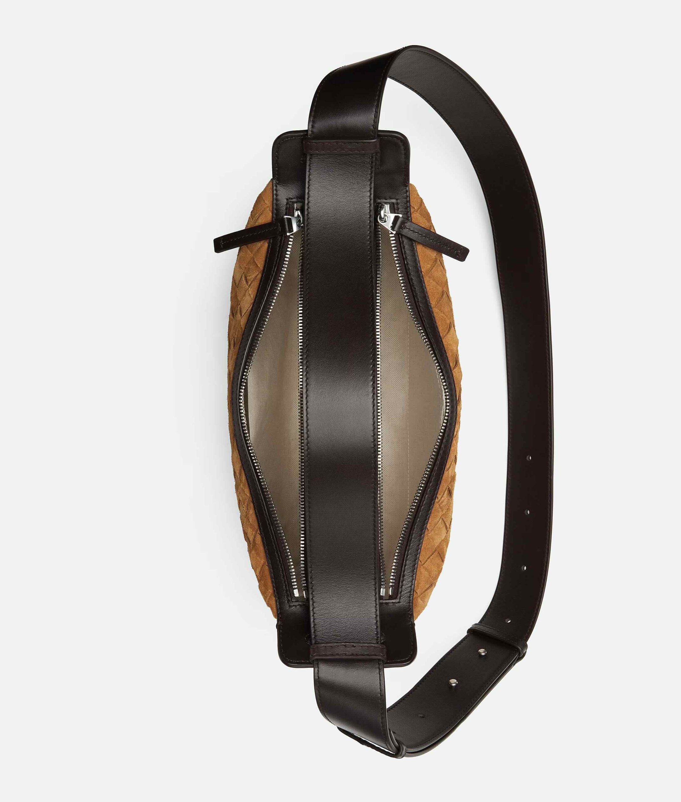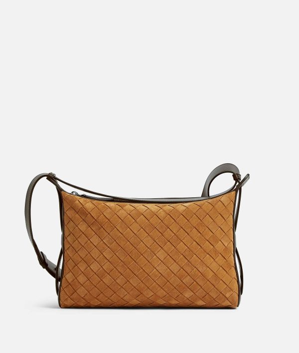 Cross-body bag in Intrecciato leather feautring a collapsible top handle.