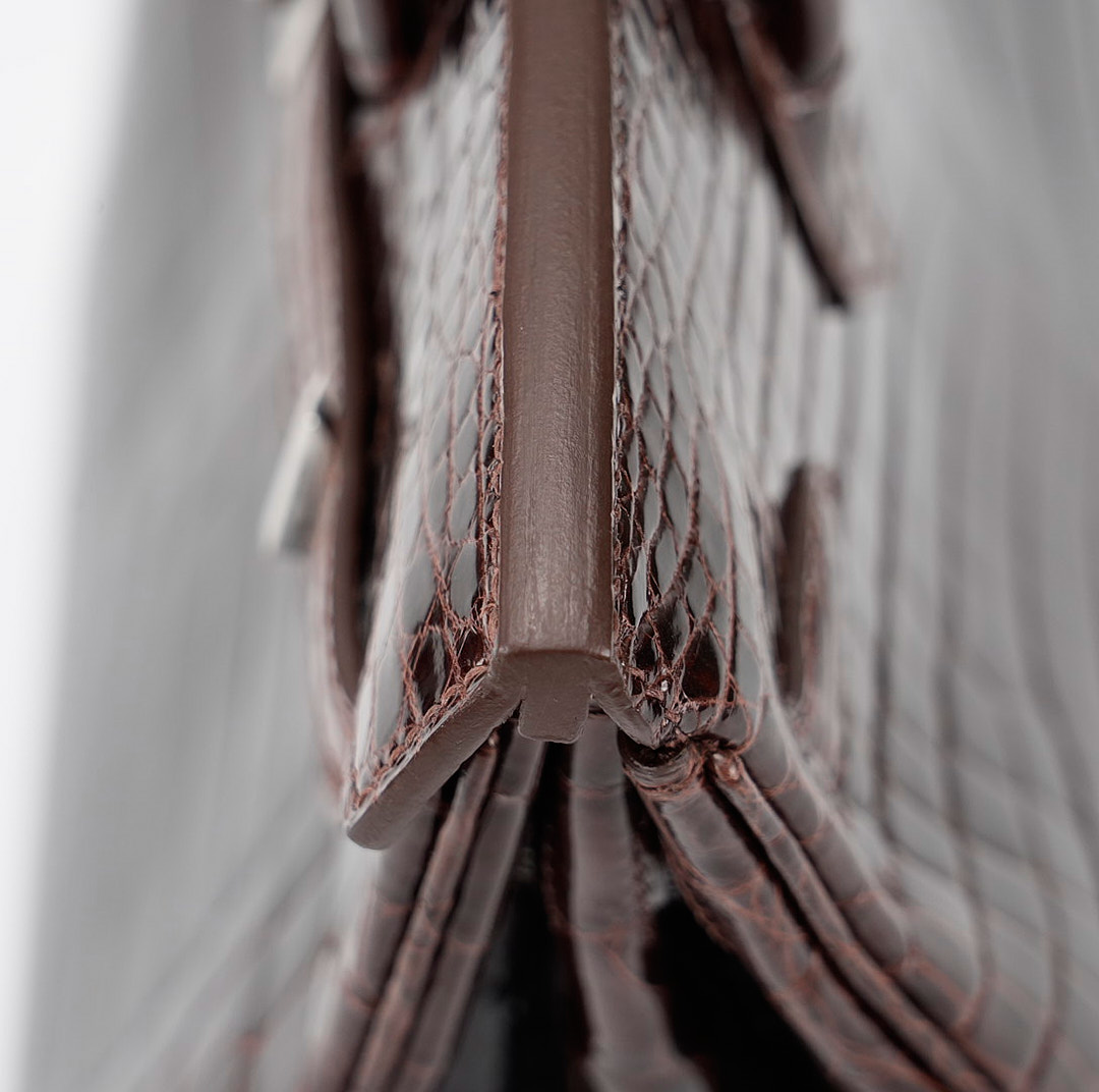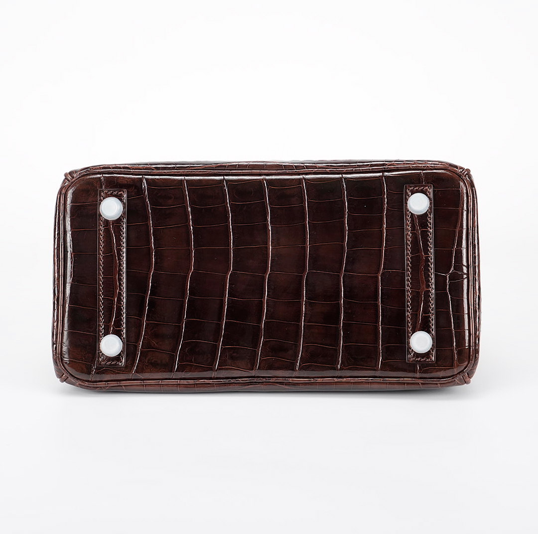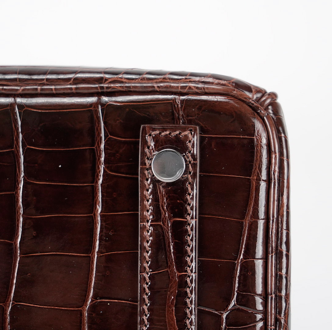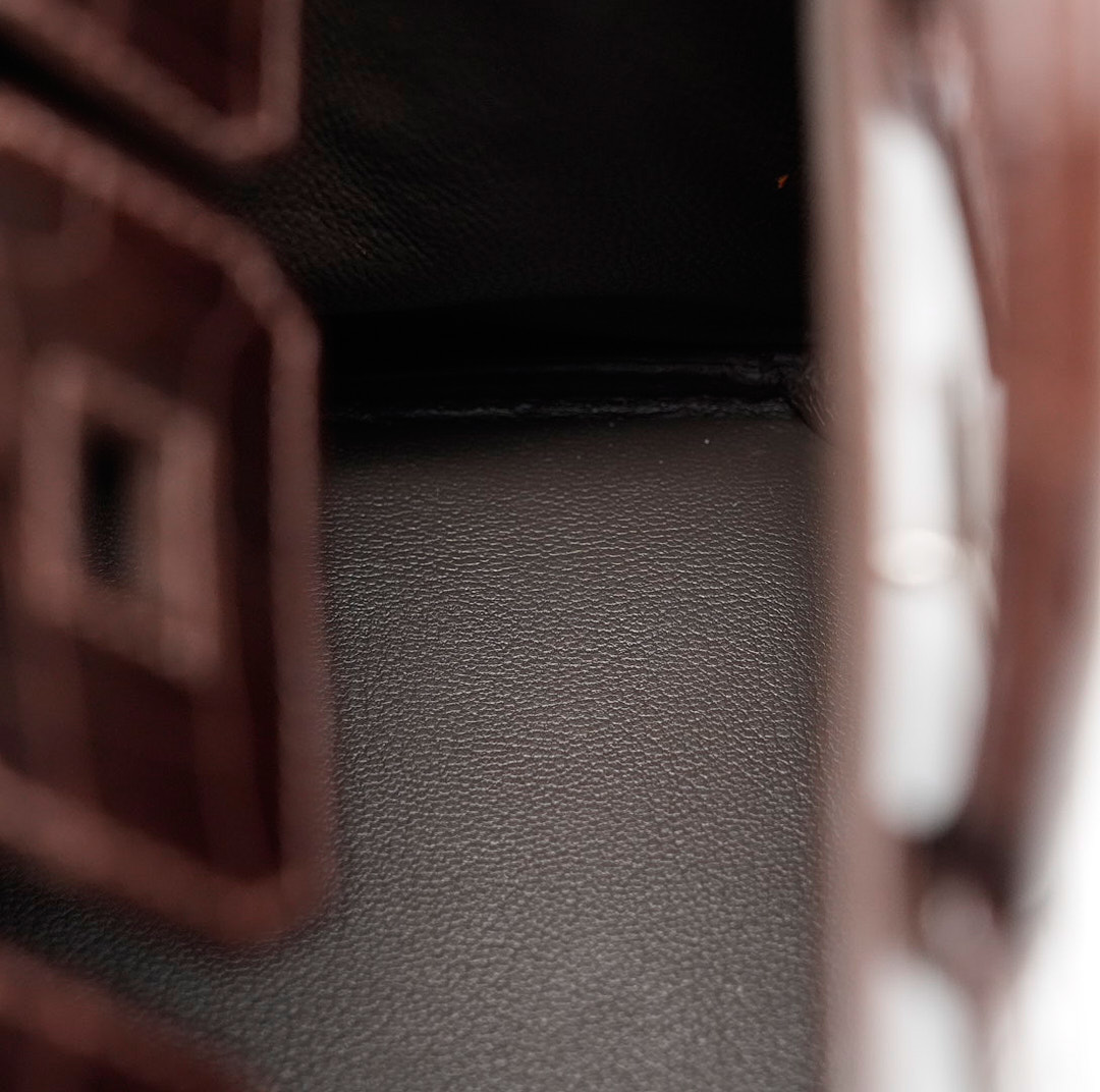 This BK 25 has been handcrafted from Crocodile Niloticus leather in Cocoan, one of our most precious exotics, and detailed with sparkling palladium hardware. The much-coveted size 25 and chocolate-colored shade means it’s designed for seamless day-to-dark dressing and spacious enough for the essentials only.
