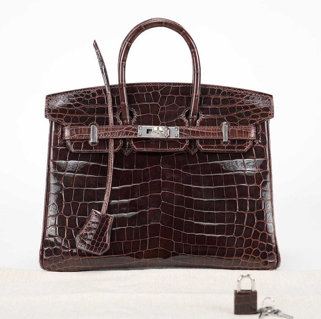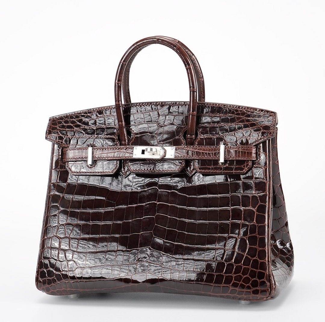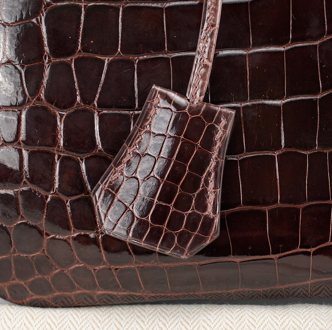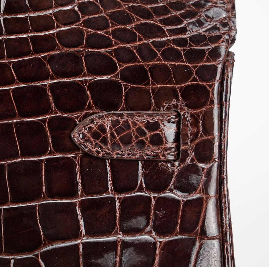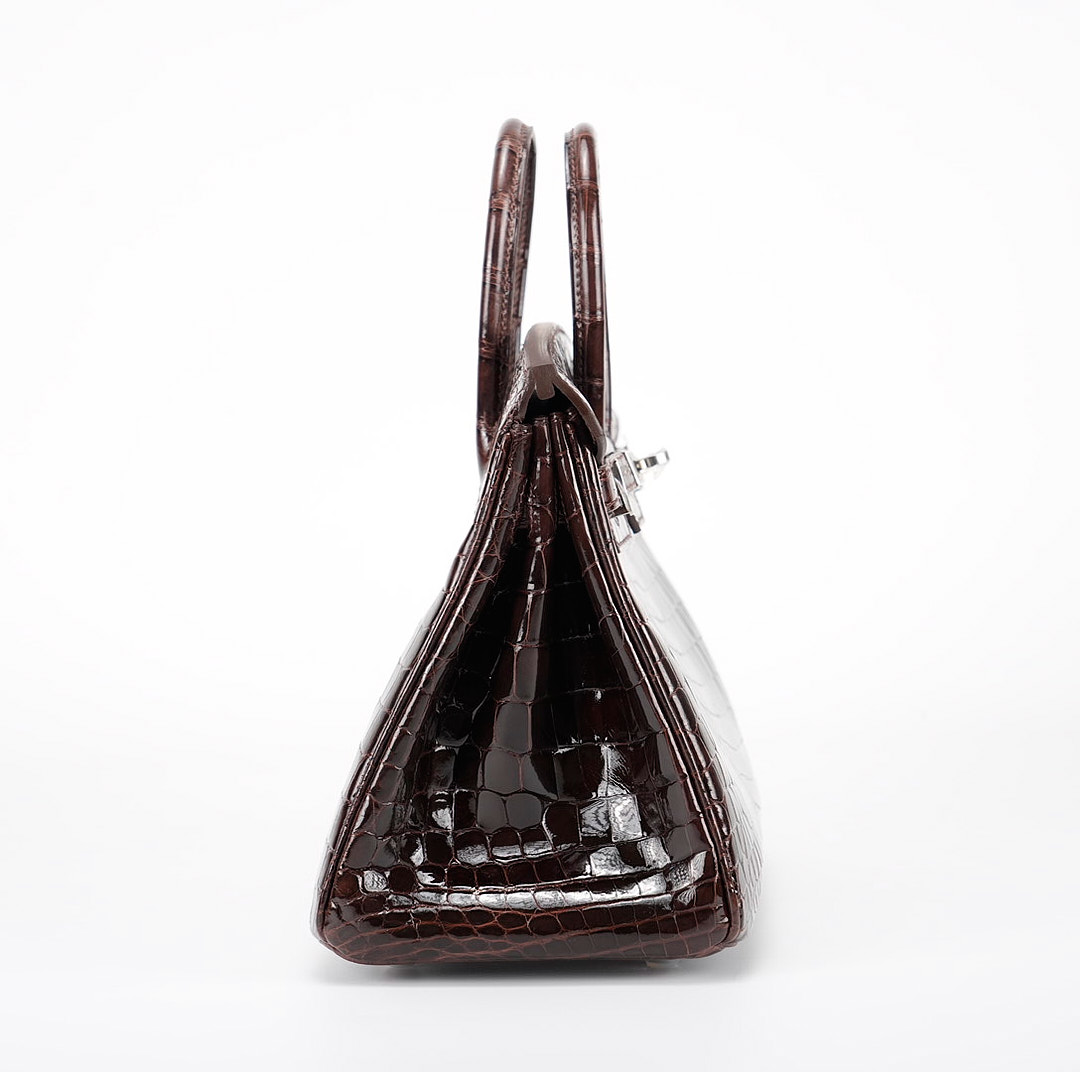 This BK 25 has been handcrafted from Crocodile Niloticus leather in Cocoan, one of our most precious exotics, and detailed with sparkling palladium hardware. The much-coveted size 25 and chocolate-colored shade means it’s designed for seamless day-to-dark dressing and spacious enough for the essentials only.