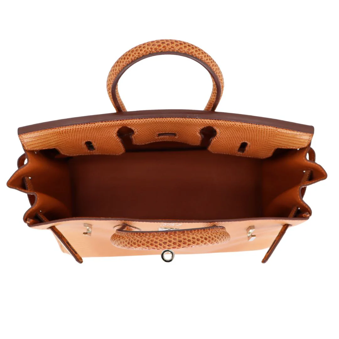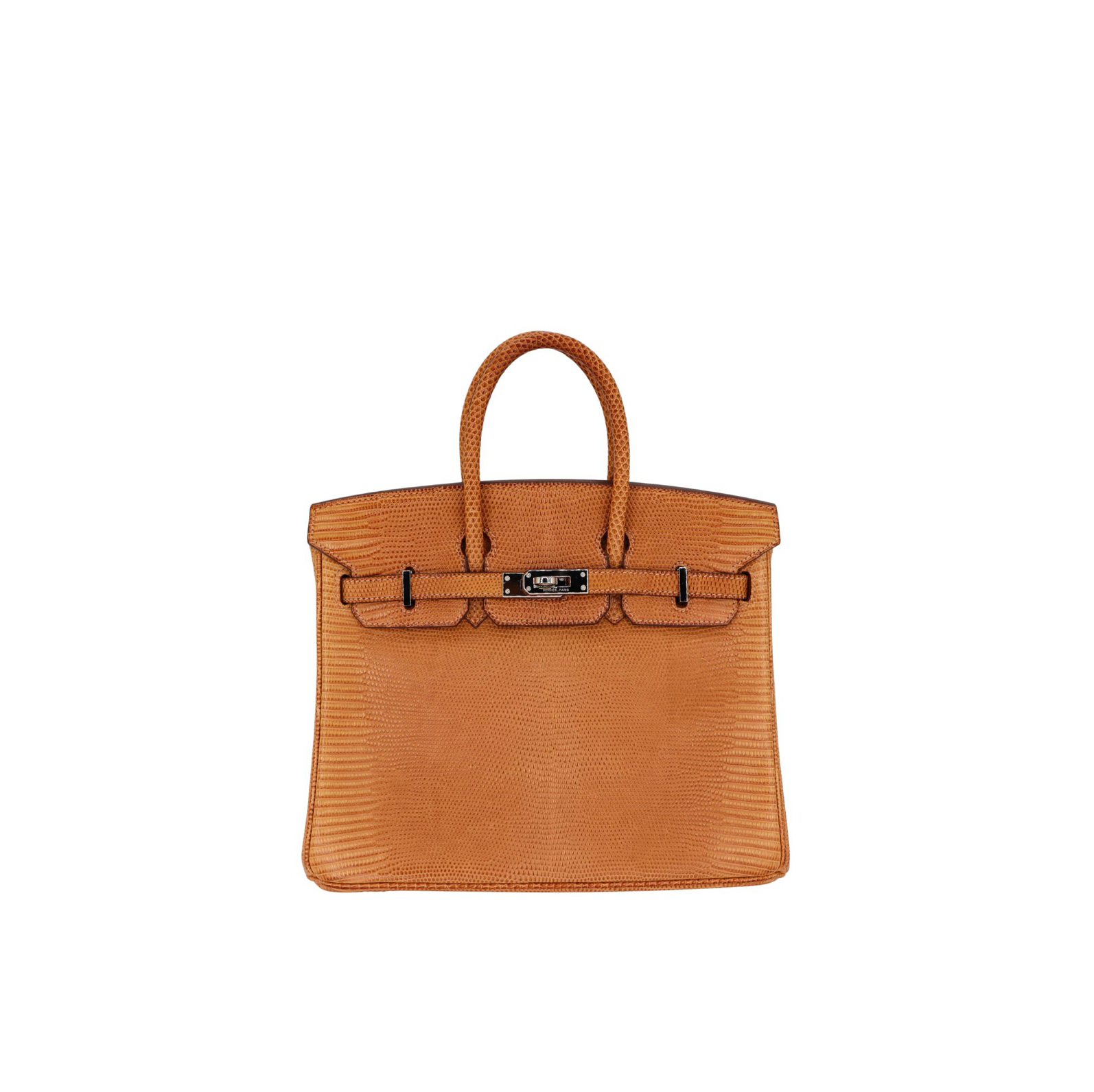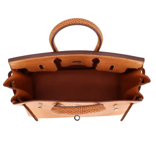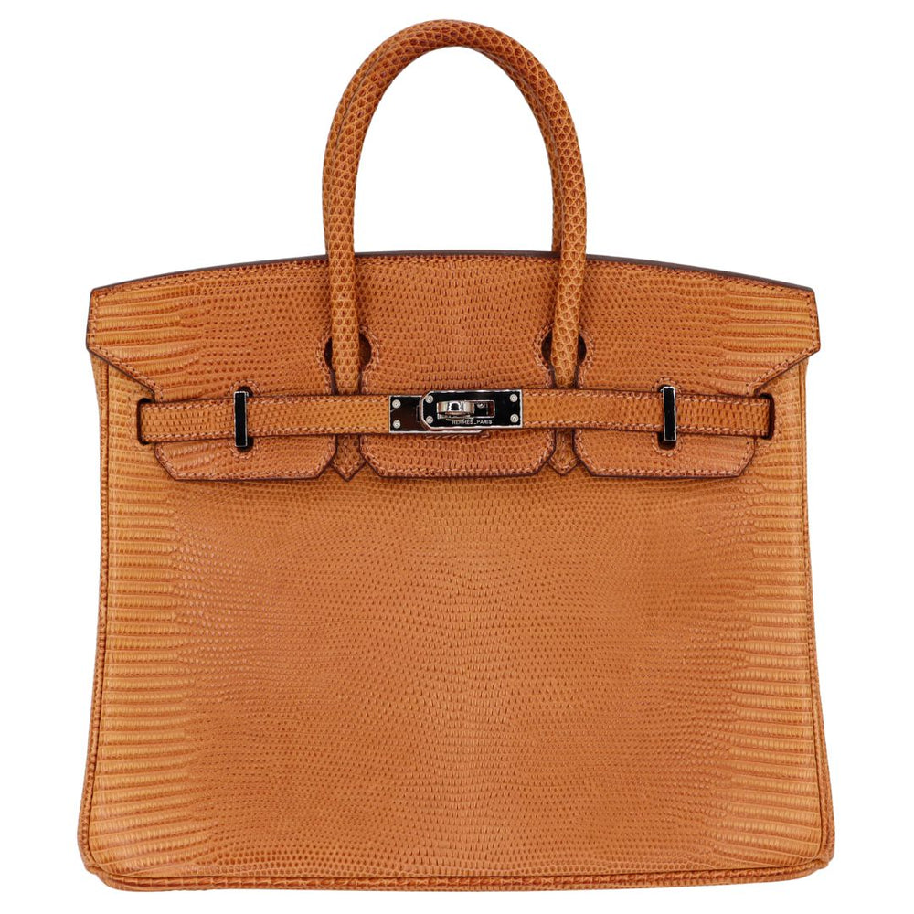 This BK is in Natural Lizard with Palladium hardware and has tonal stitching, front strap, two straps with center toggle closure, clochette with lock and two keys and double rolled handles.