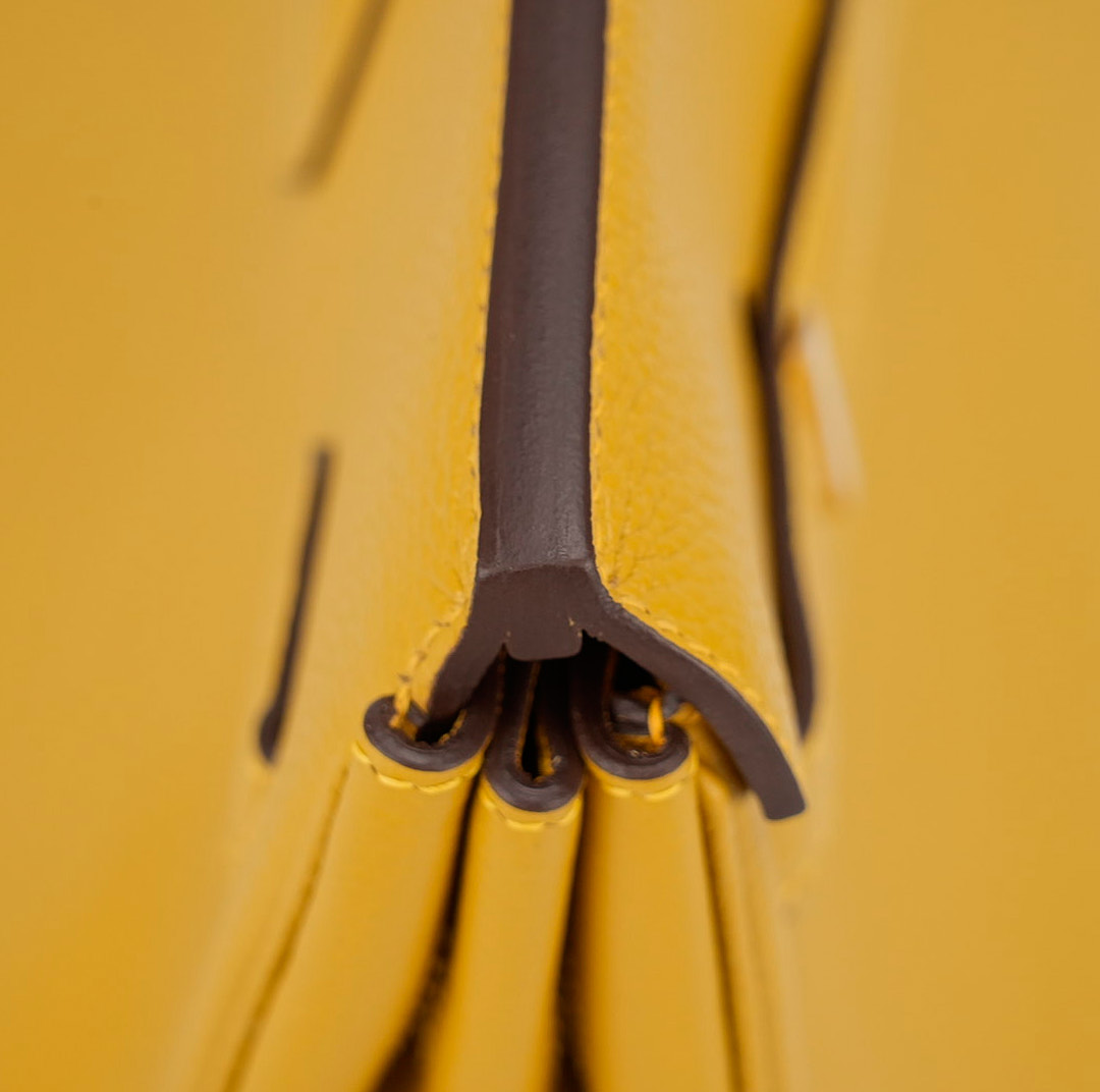 Add a subtle touch of luxury to your style with this BK 25. Handcrafted from grained Togo leather, it features the shade of Jaune Ambre.