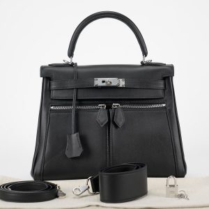 A collector KY Lakis, handcrafted from black swift leather, and detailed with palladium hardware. The zippered pockets are ideal to keep your phone and keys at hand, making the bag the perfect spacious addition for any occasion. Attach the shoulder strap when you are on the go and wear the bag crossbody.