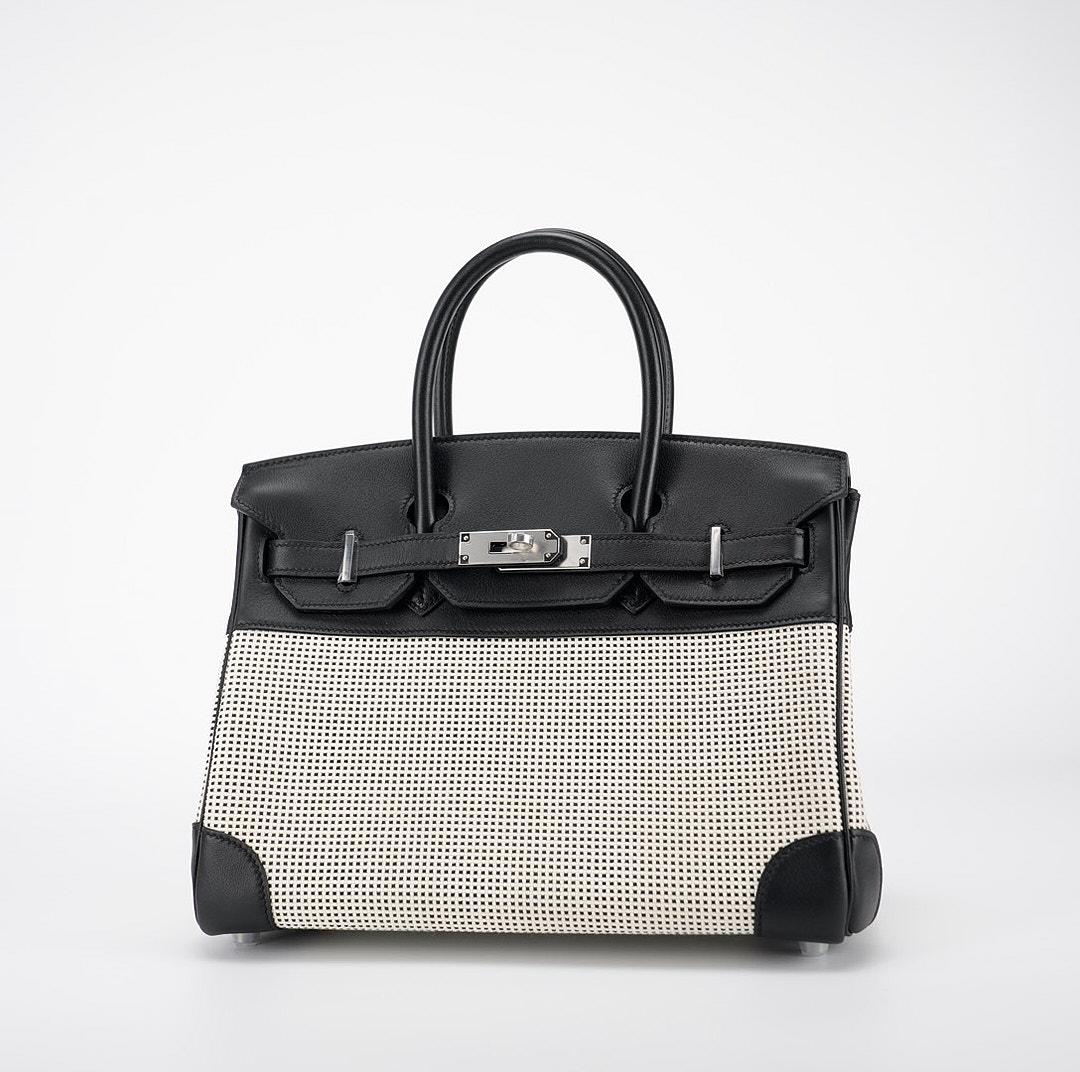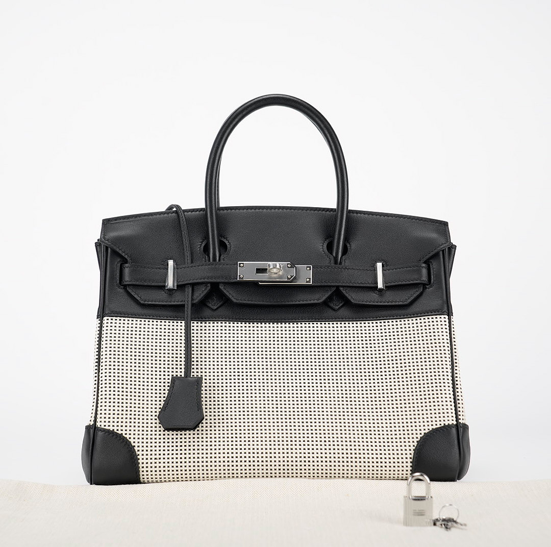 HomeShopBirkinAntonia’s trip Black Swift and Ecru Toile Quadrille BK 30 Palladium