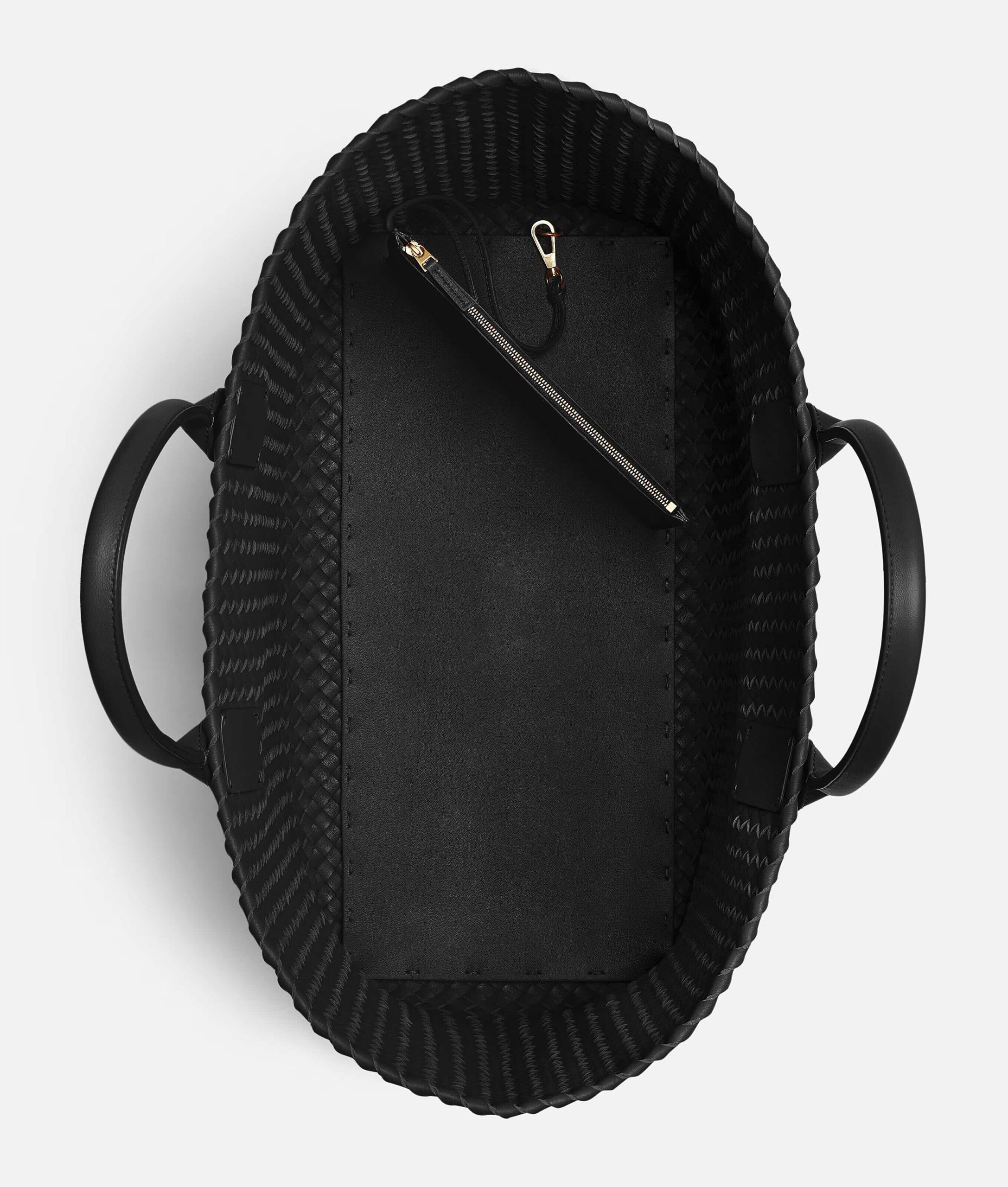 Big Tote bag in soft Intrecciato leather. There is a detachable interior zipped pouch compartment and one zipped pocket.