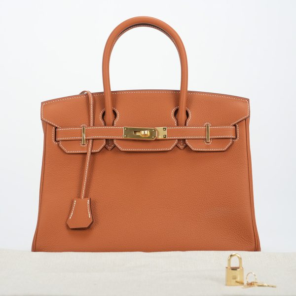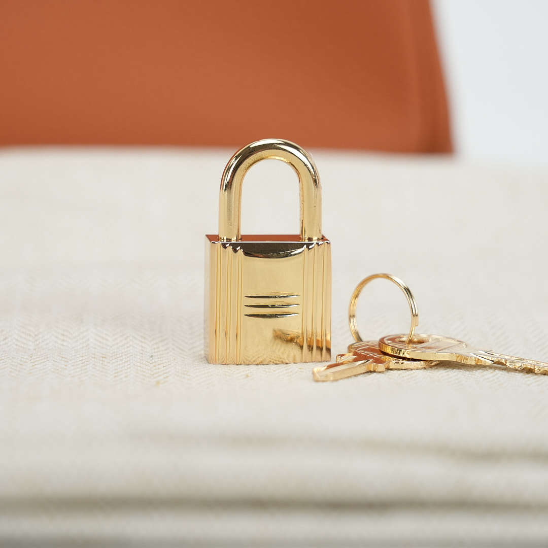 Colored in Gold, this BK 30 is a timeless addition to your collection. Handcrafted from softly grained Togo leather, it is enhanced with gold hardware.