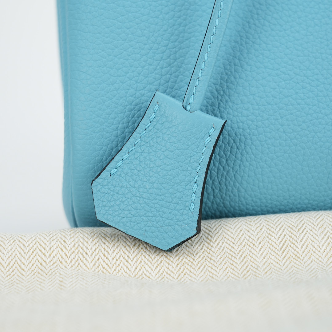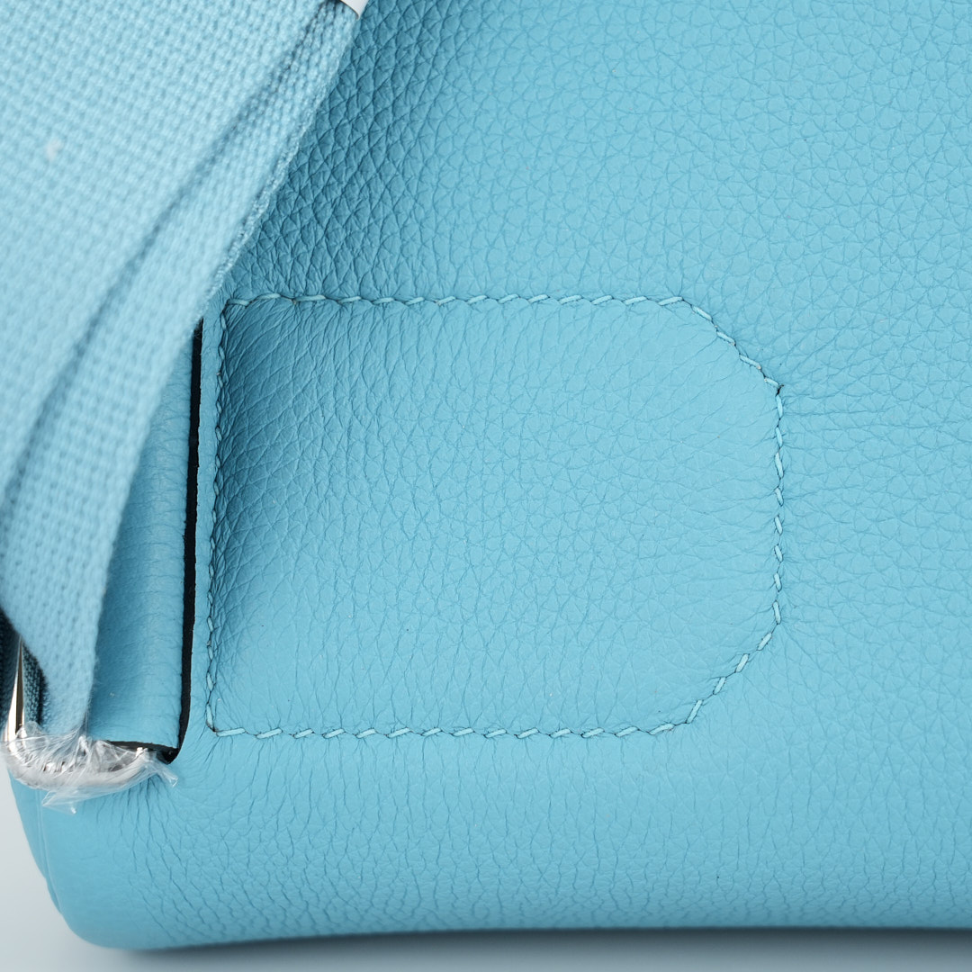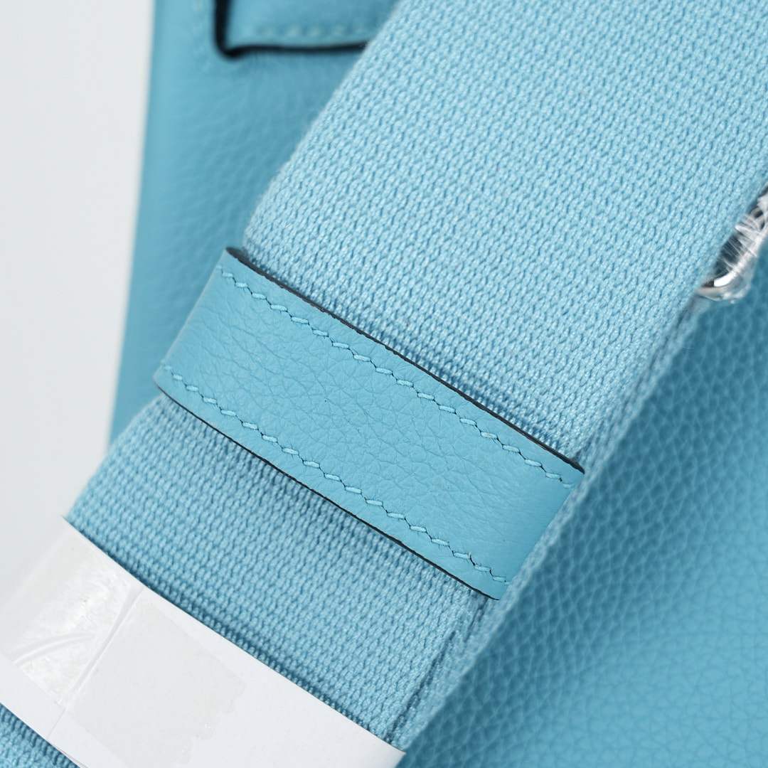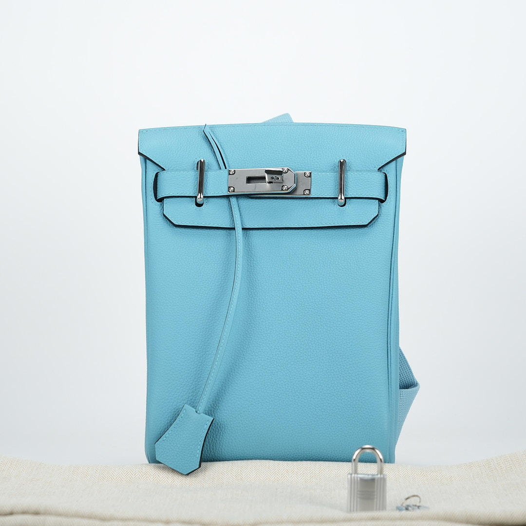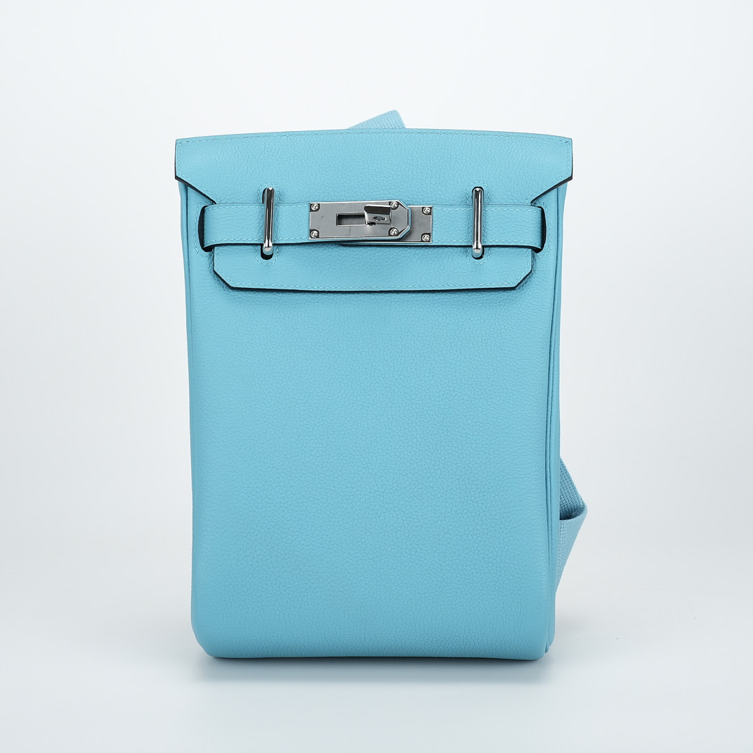 This HAC A Dos PM Backpack is in Bleu Du Nord Togo leather with palladium hardware and has tonal stitching, two straps with front toggle closure, and an adjustable shoulder strap.