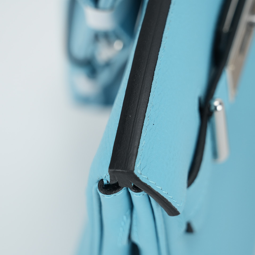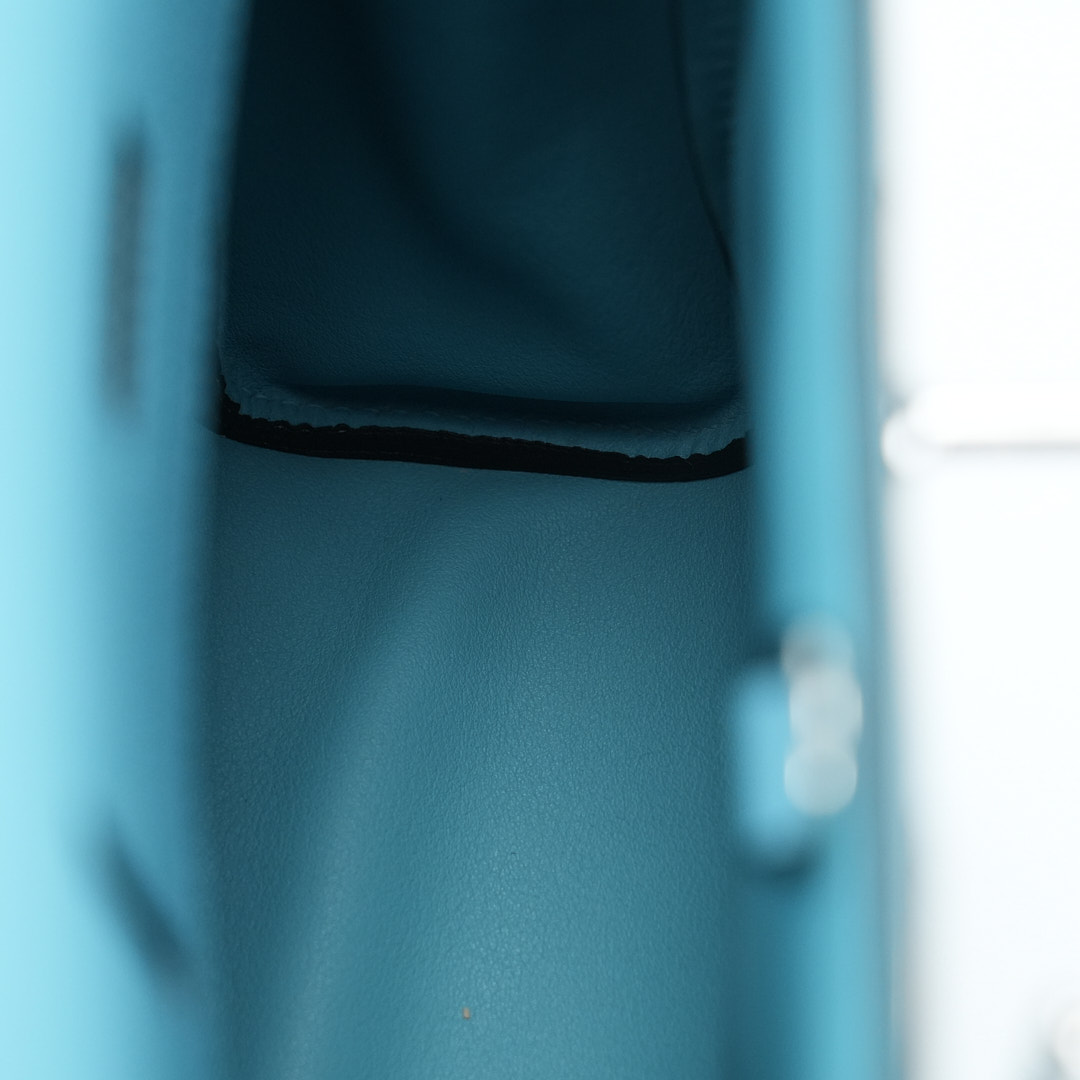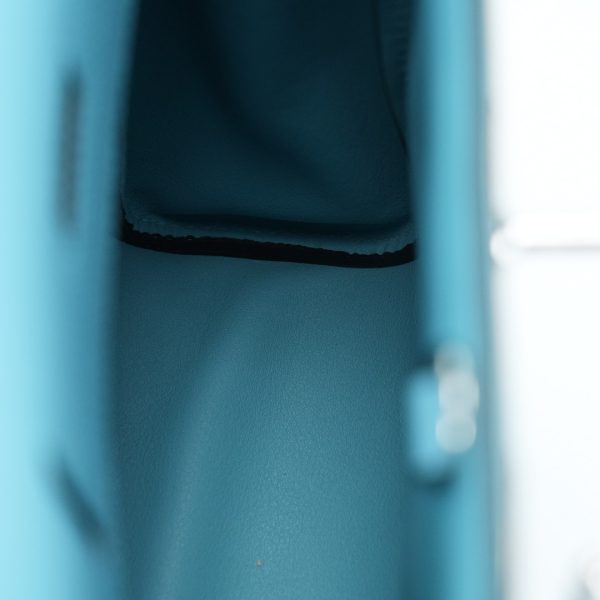 The interior is lined in Bleu Du Nord leather and has an open pocket on the rear wall.
