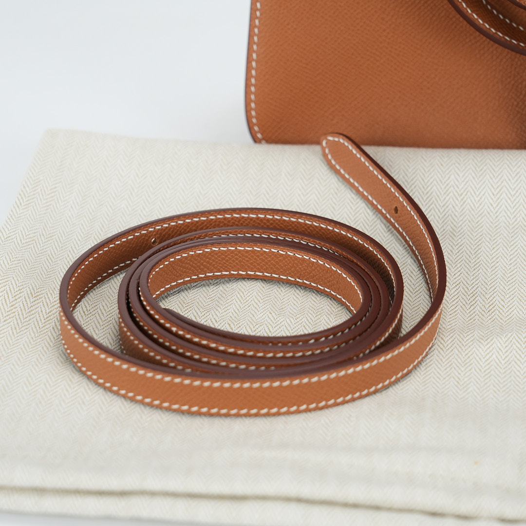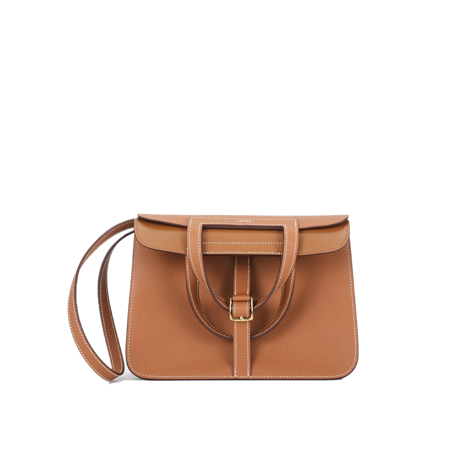 Add a pop of color to your wardrobe with this Halzan 25. It has been handcrafted from Epsom leather and is colored in Gold.