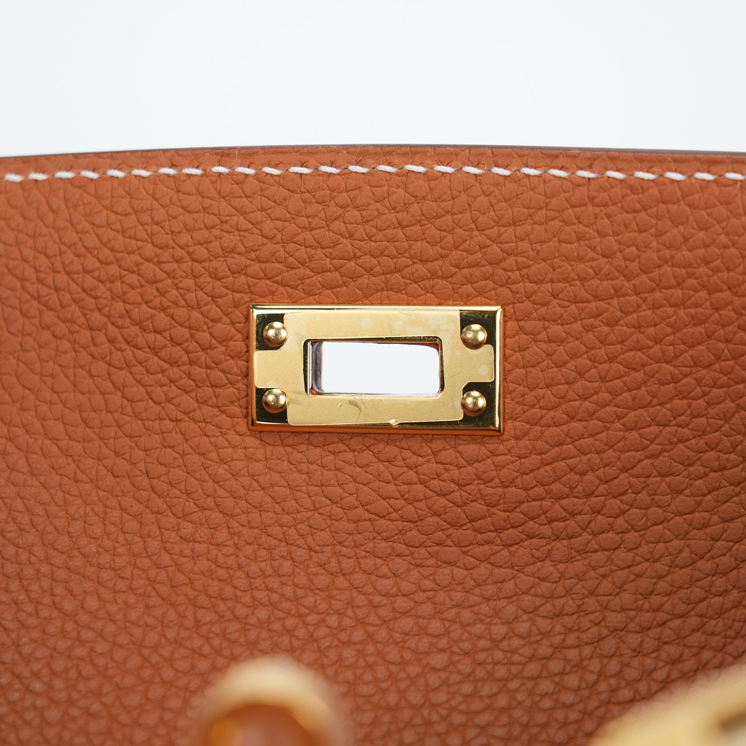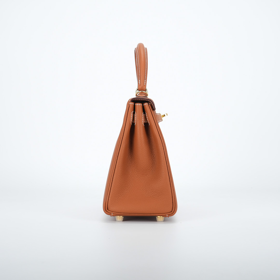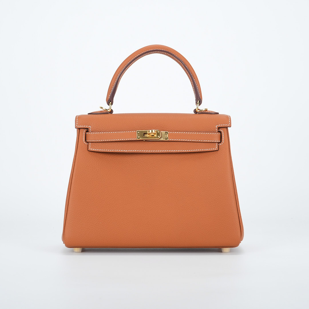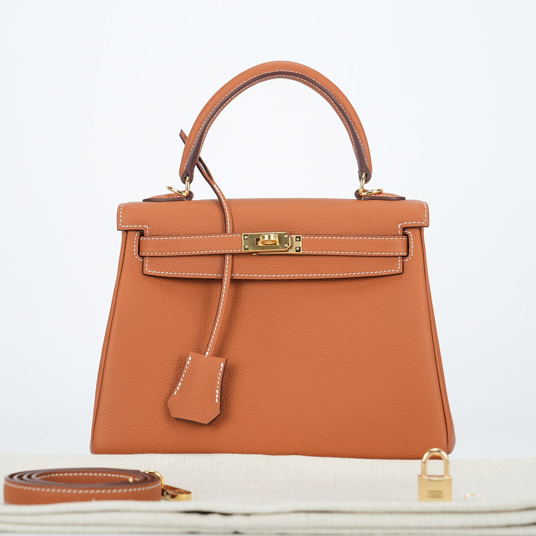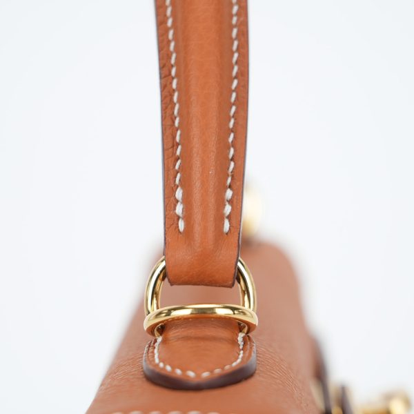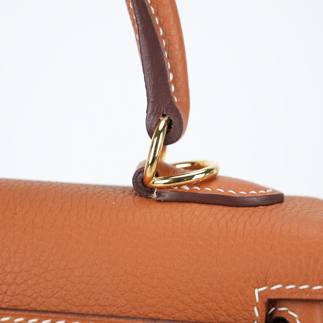 An KY 25 gold togo retourne to elevate your off-duty attire. It has been expertly sewn together by hand using togo leather. Match your jewelry to the gold-plated hardware and attach the shoulder strap to go hands-free.