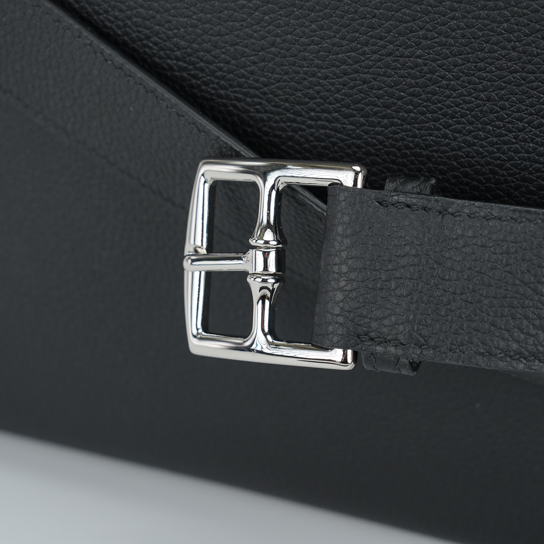 KY Messenger GM 32 model bag featured in black shade. Versatile, chic and sporty, it can be worn on the shoulder, crossbody on the front or the back of the body. So stylish in black togo leather and Palladium hardware with the adjustable strap.