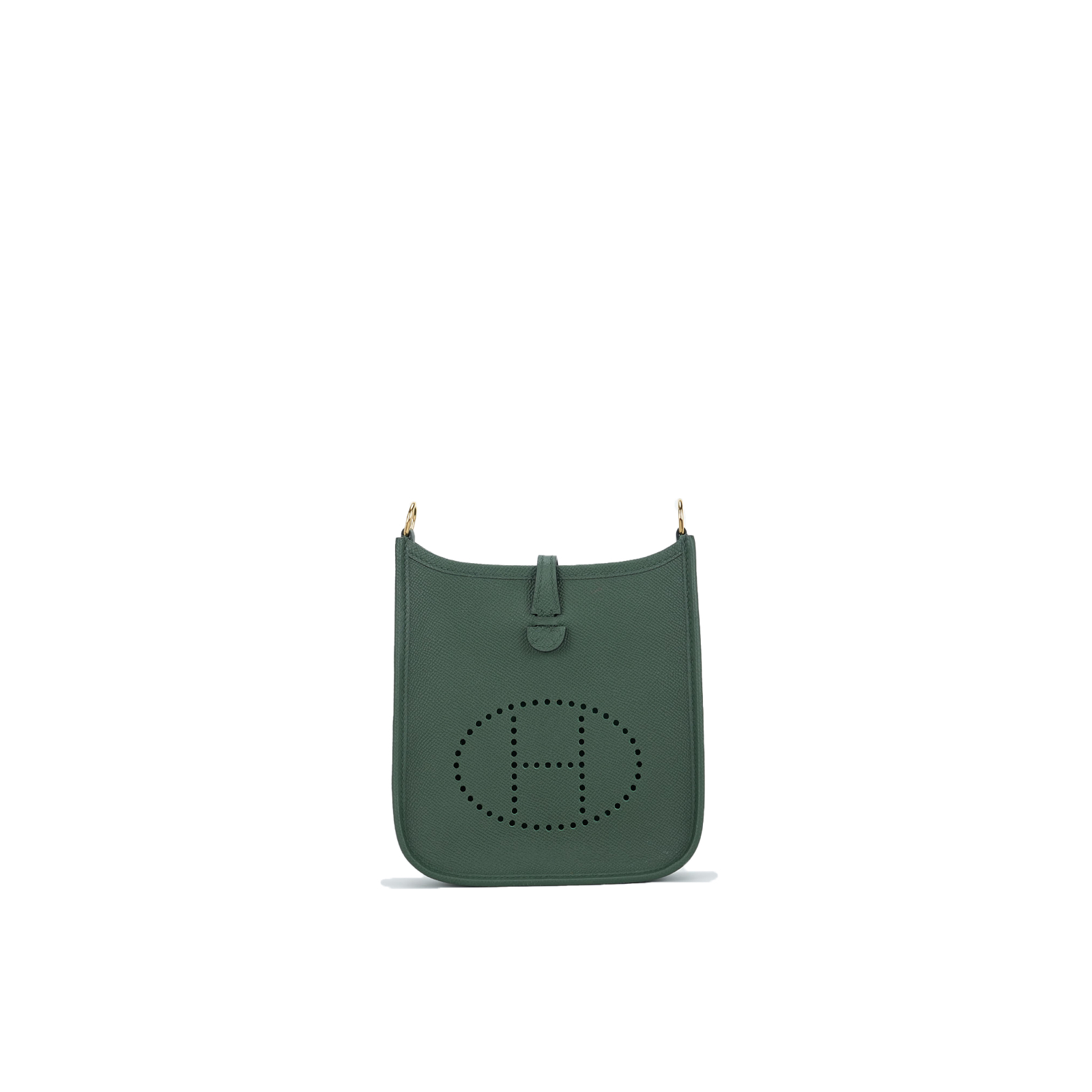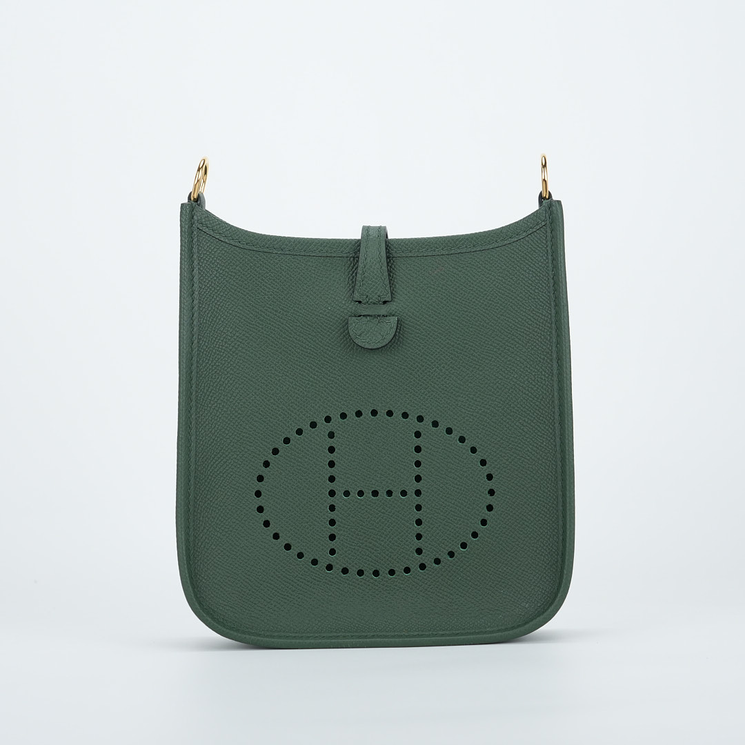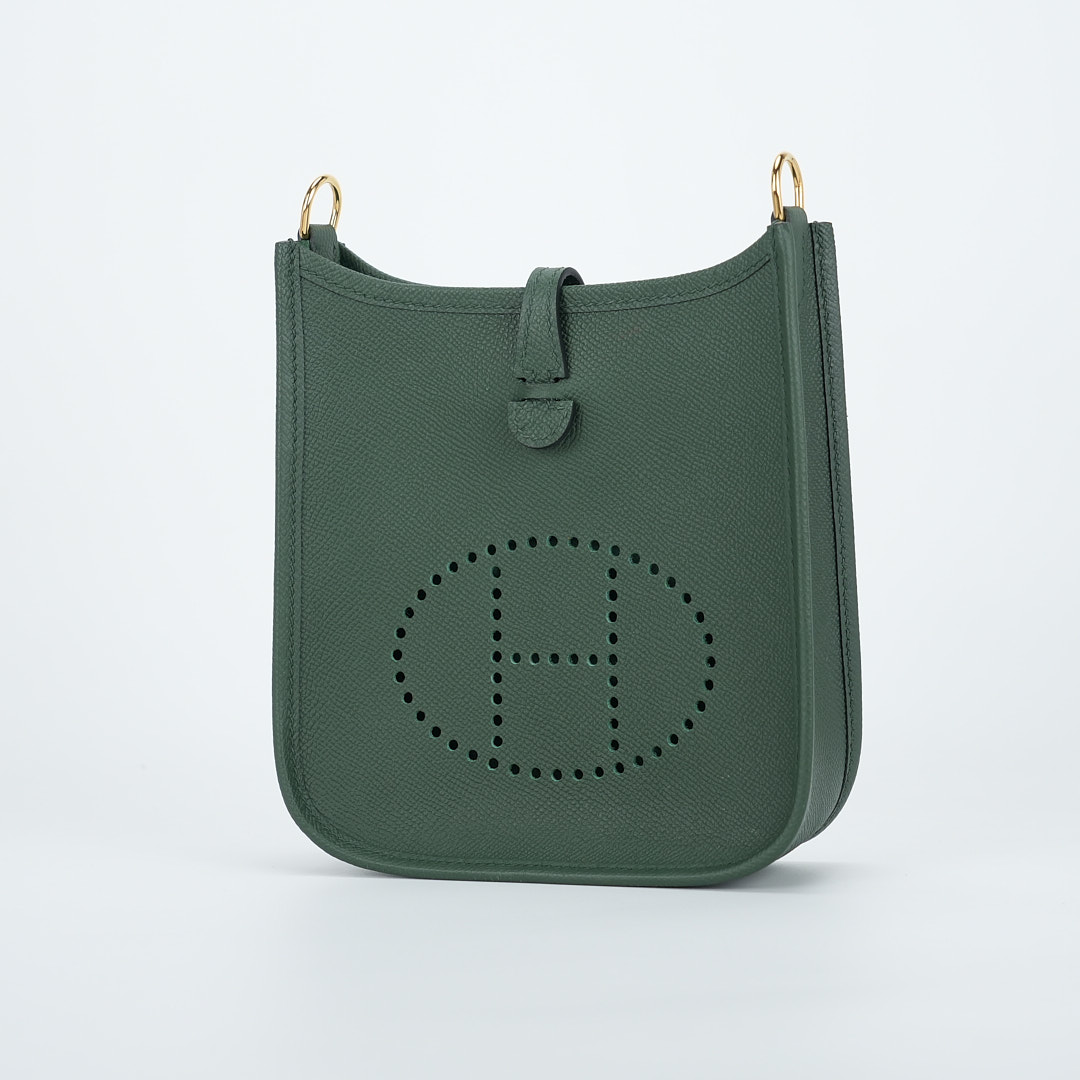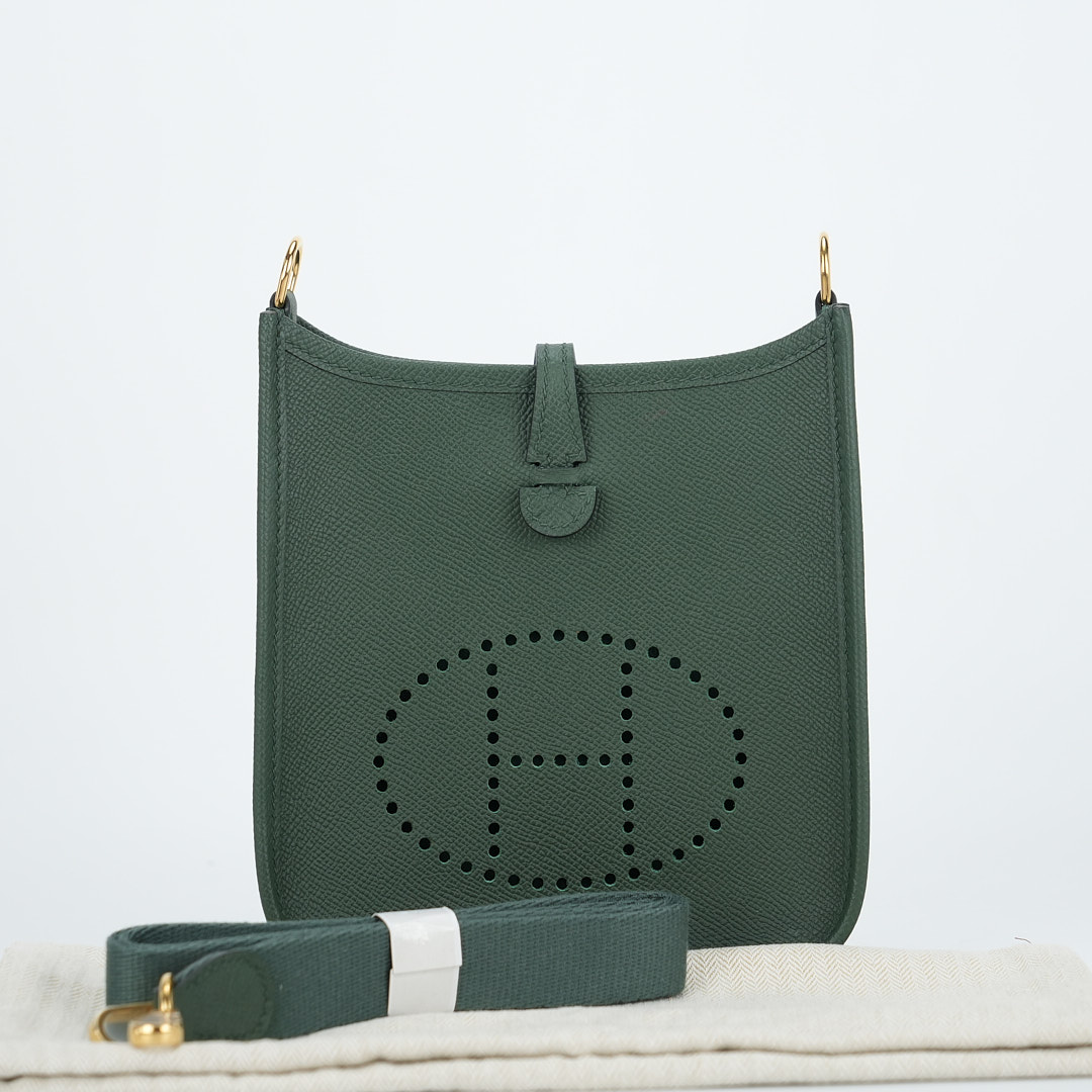 Vert Mangrove Epsom Mini Evelyne II TPM 16 Gold Hardware, The interior is unlined,Includes a strap, care booklet, dust bag and box.