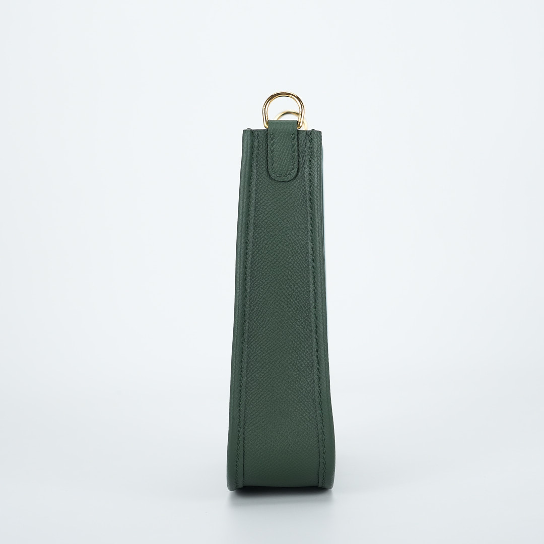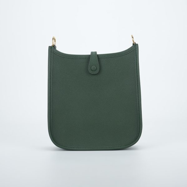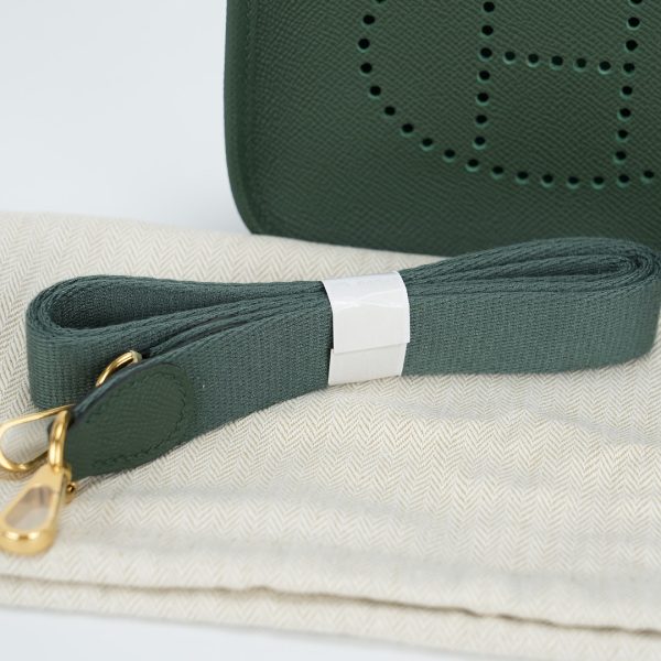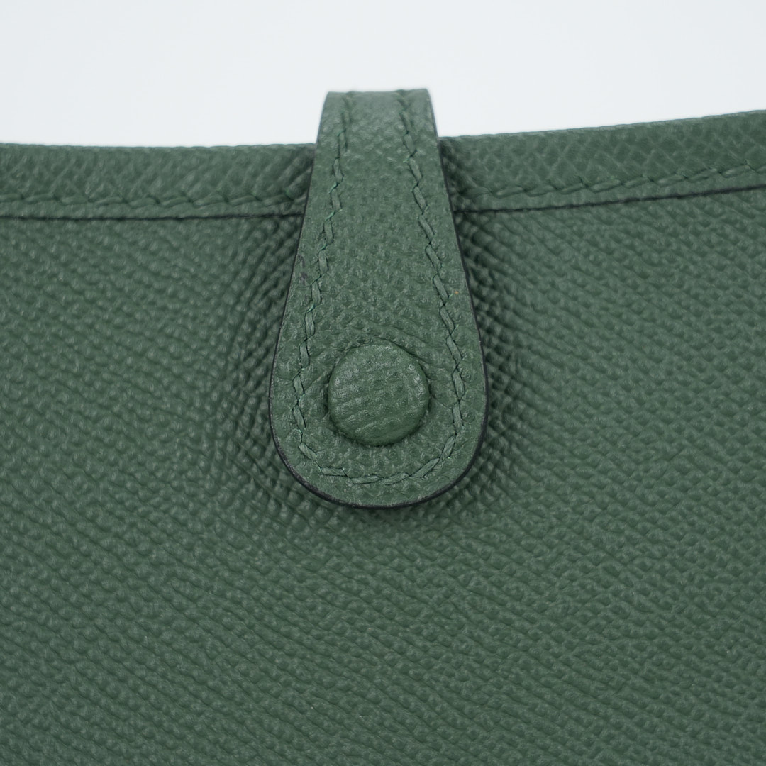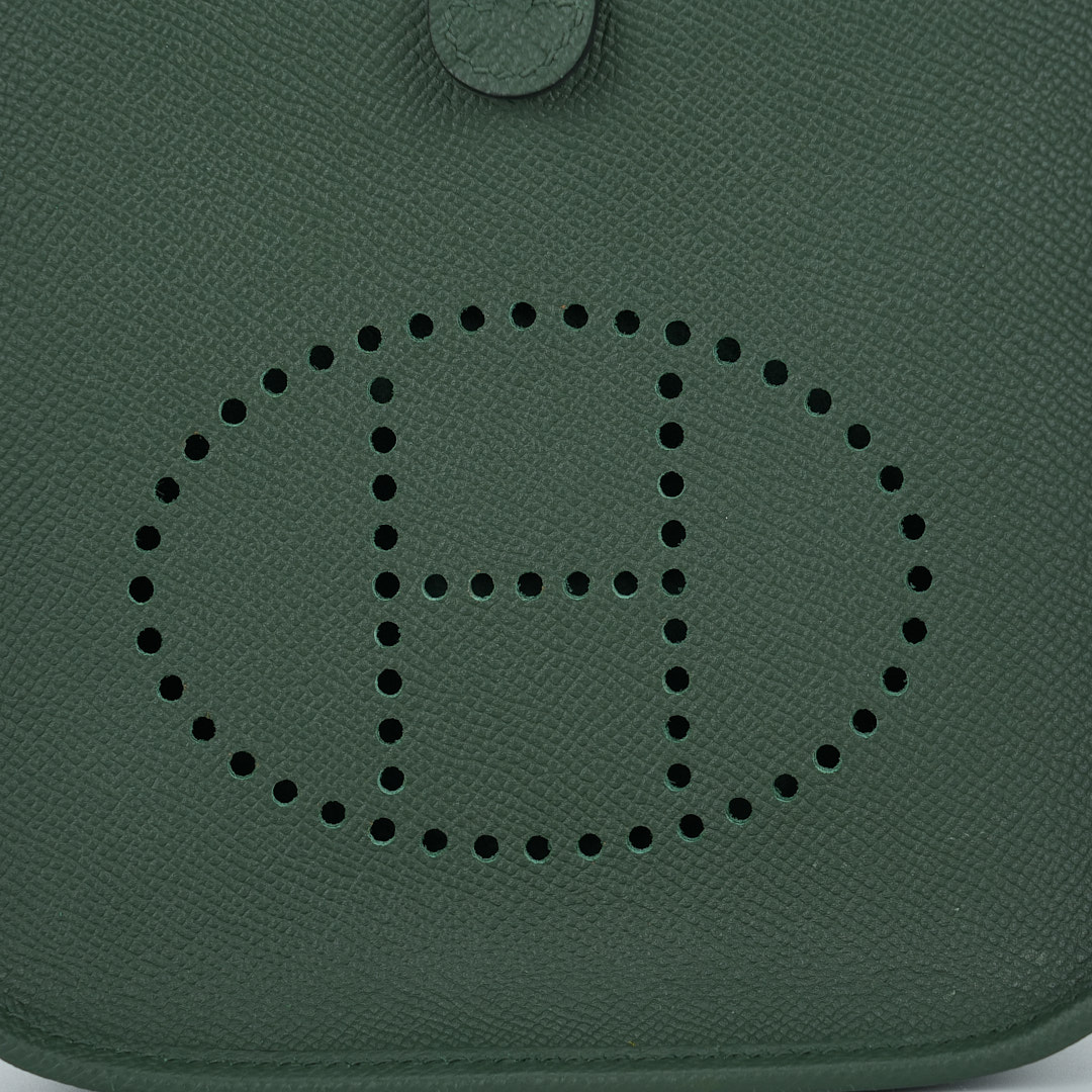 Vert Mangrove Epsom Mini Evelyne II TPM 16 Gold Hardware, The interior is unlined,Includes a strap, care booklet, dust bag and box.