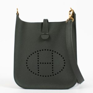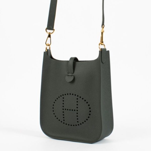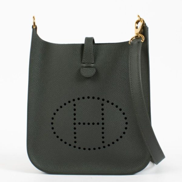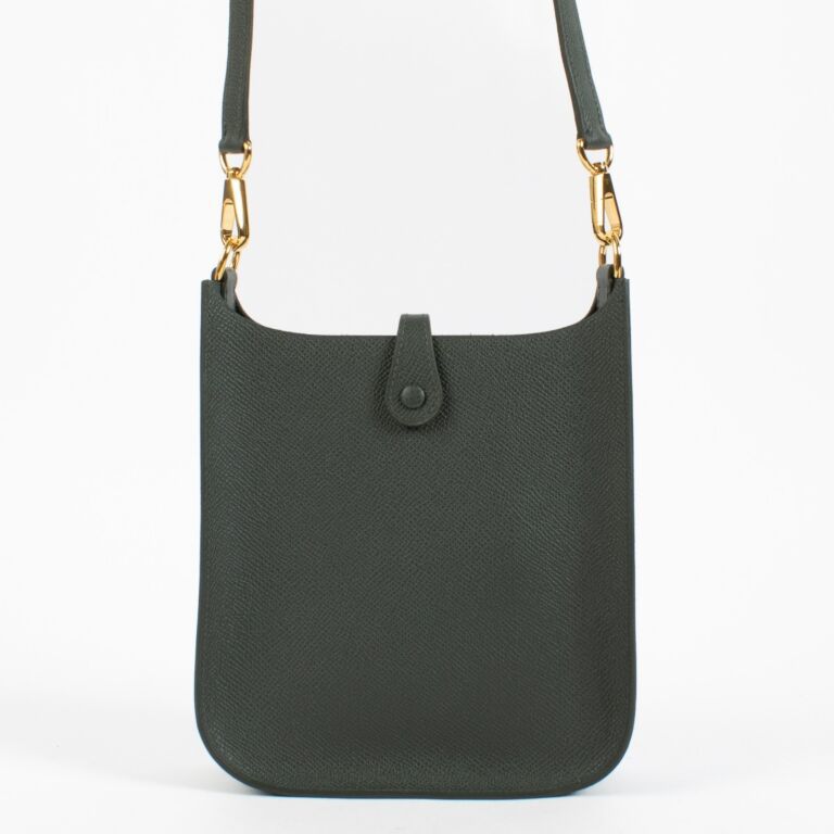 Vert Mangrove Epsom Mini Evelyne II TPM 16 Gold Hardware, The interior is unlined,Includes a strap, care booklet, dust bag and box.