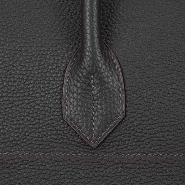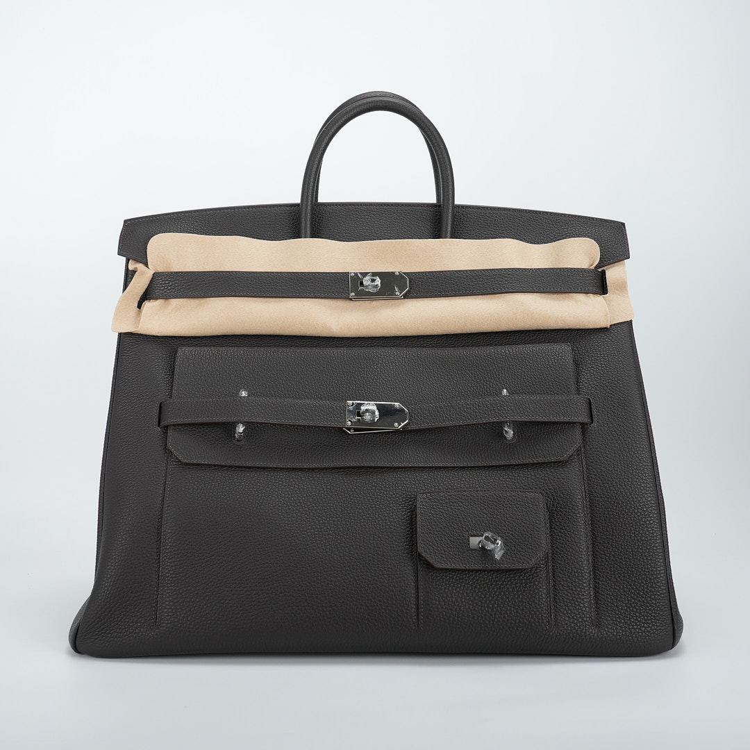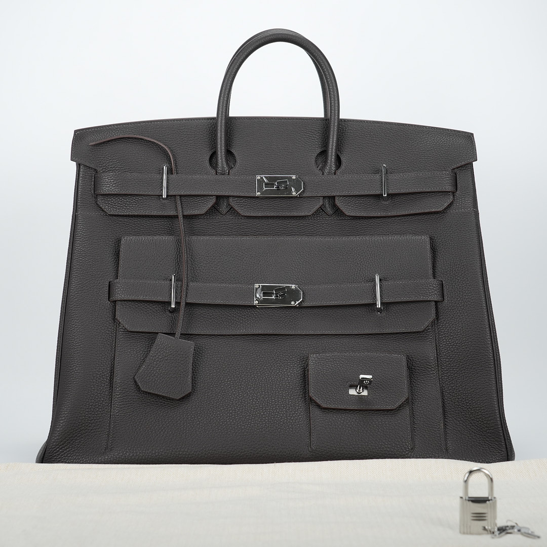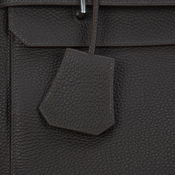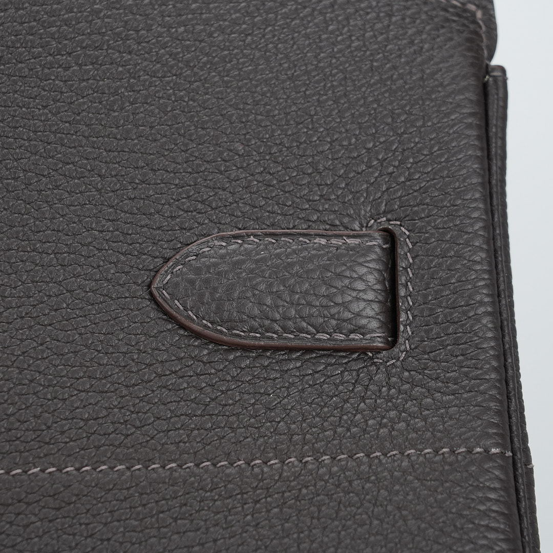 Embrace timeless elegance with this Ecorce Café Multi-Pockets 50 in Taurillon Clemence leather. This spacious bag pays homage to equestrian heritage while meeting modern lifestyle needs.