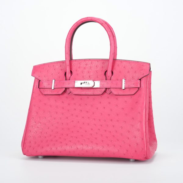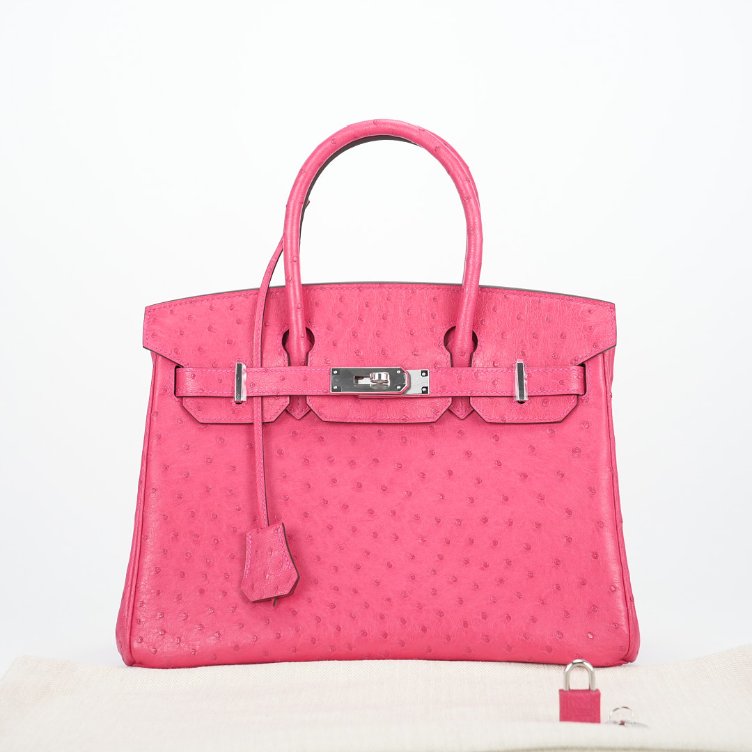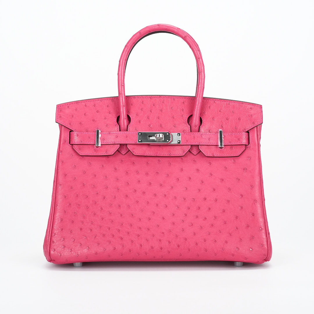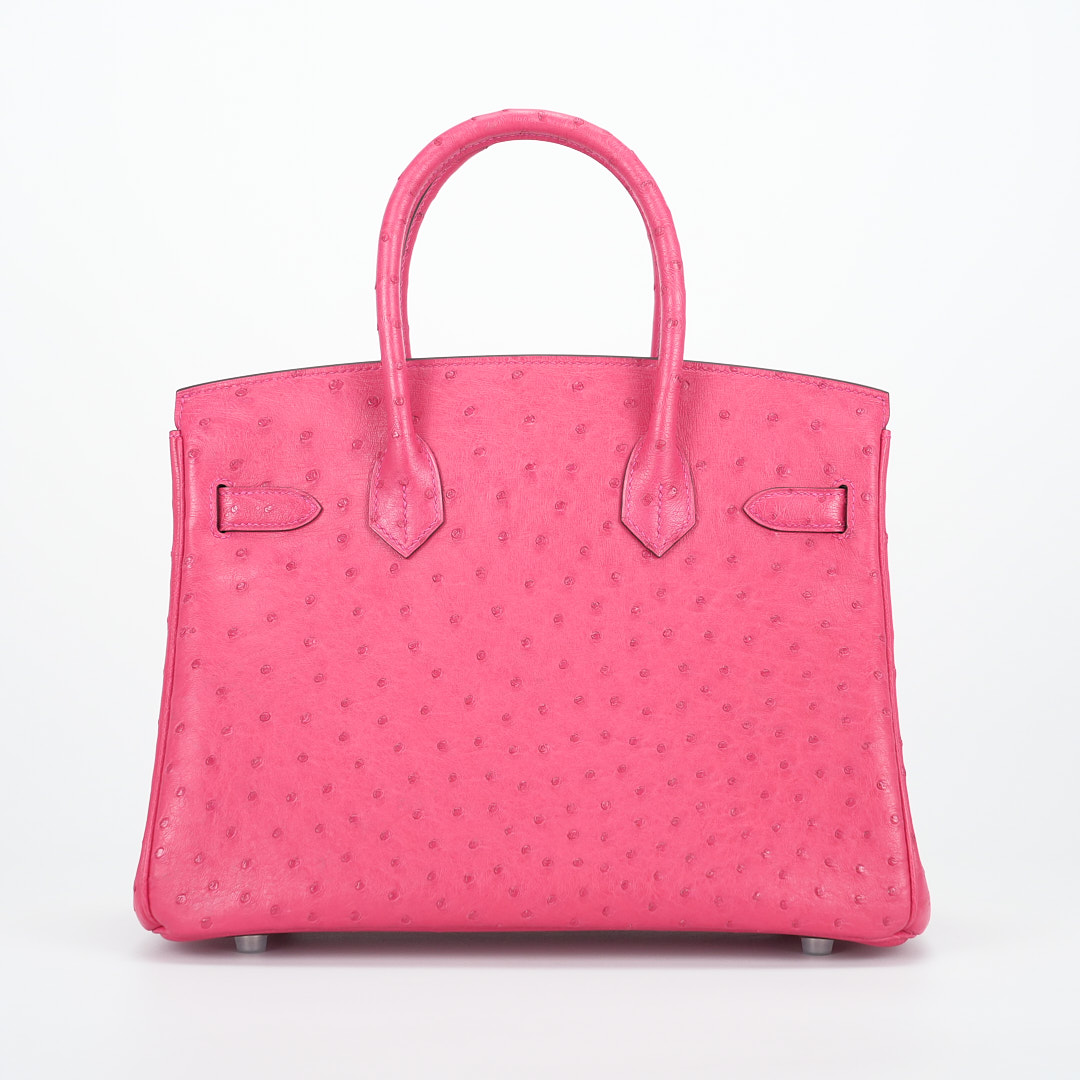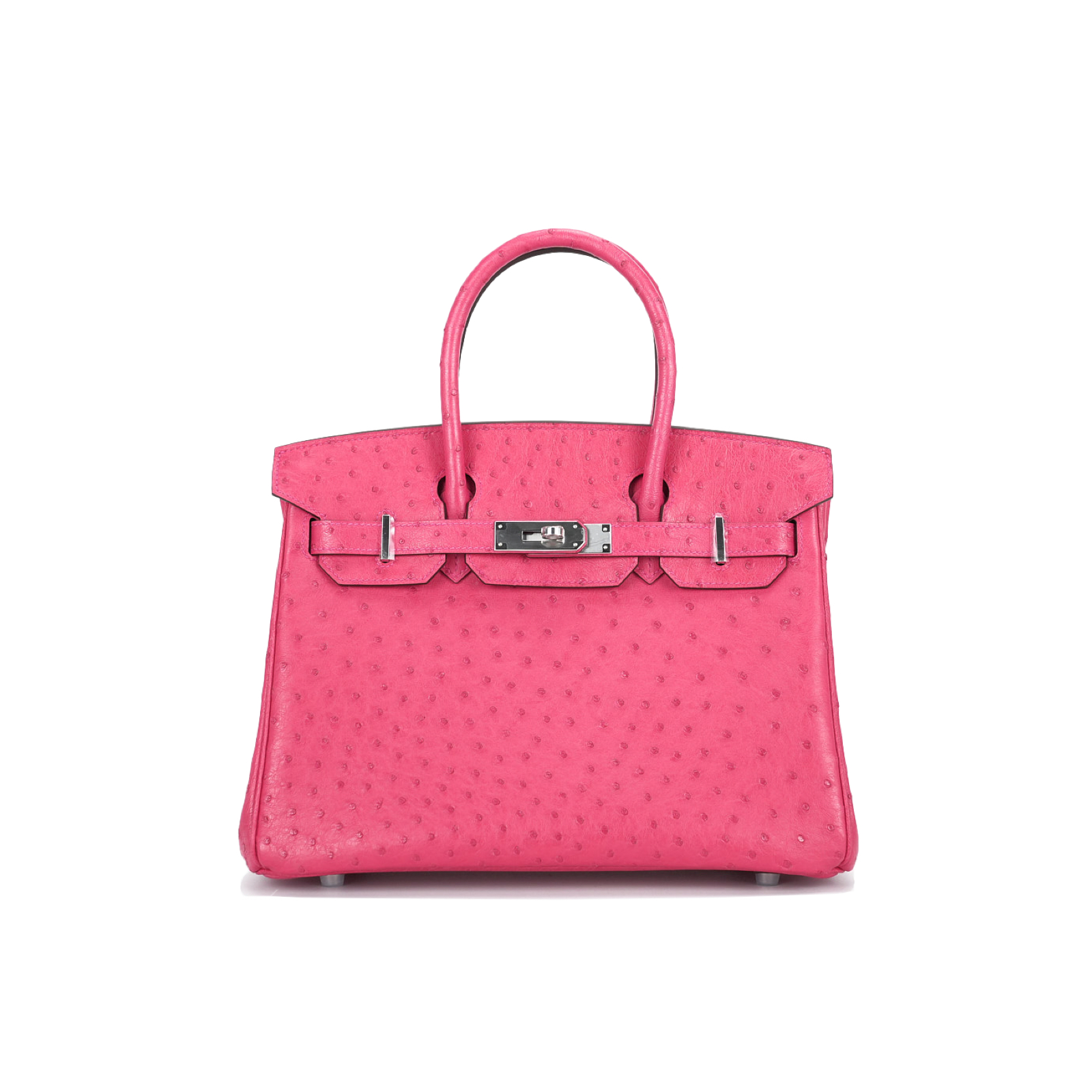 This exotic BK 30 adds a sophisticated pop of colour to your outfits. It handcrafted from ostrich leather in Fuchsia and detailed with shiny palladium hardware.