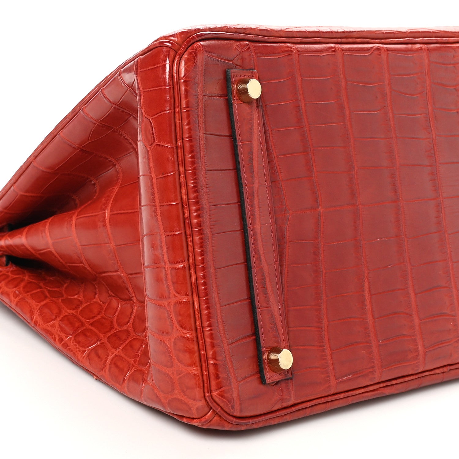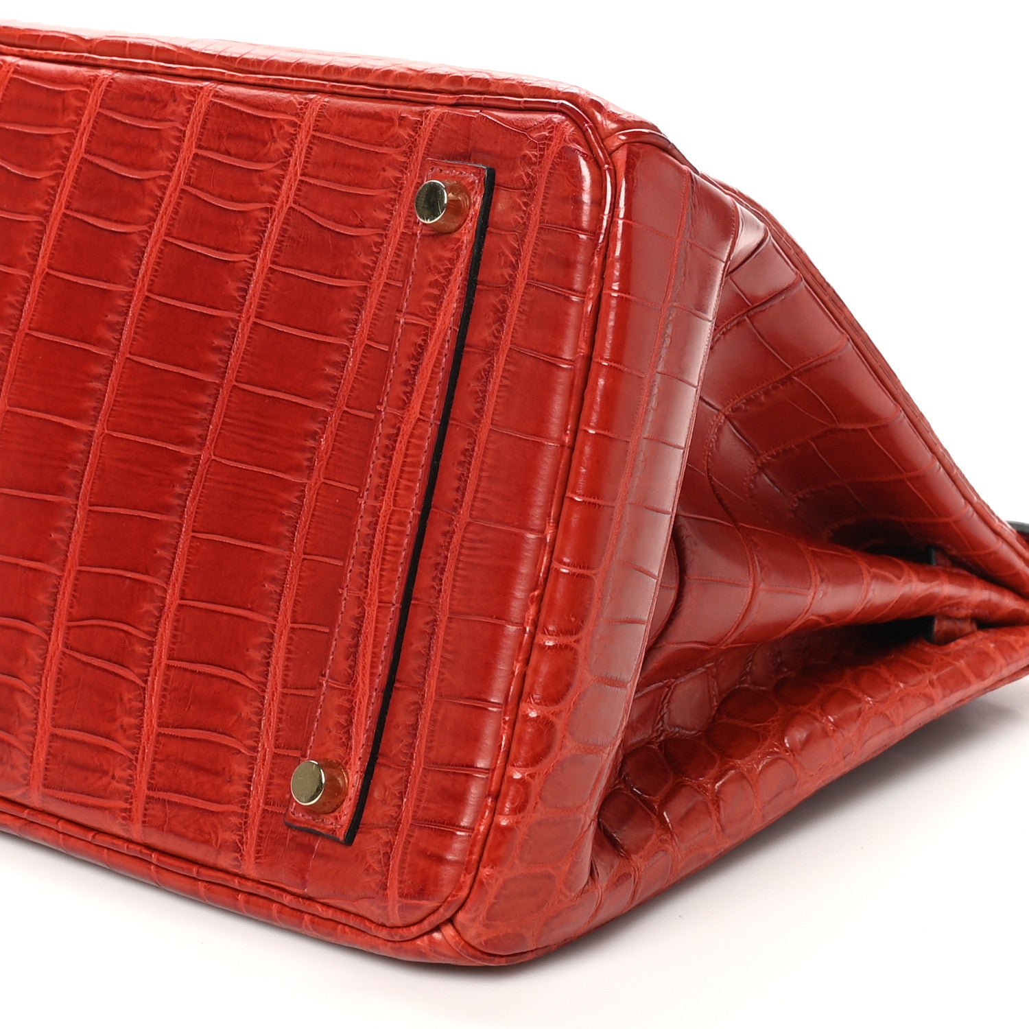 A magnificent BK, crafted in Matte Rouge H Porosus Crocodile leather and enhanced by gold hardware. This exotic piece shows the incredible mastery of when it comes to craftsmanship. Its timeless proportions hold your essentials with unparalleled sophistication.